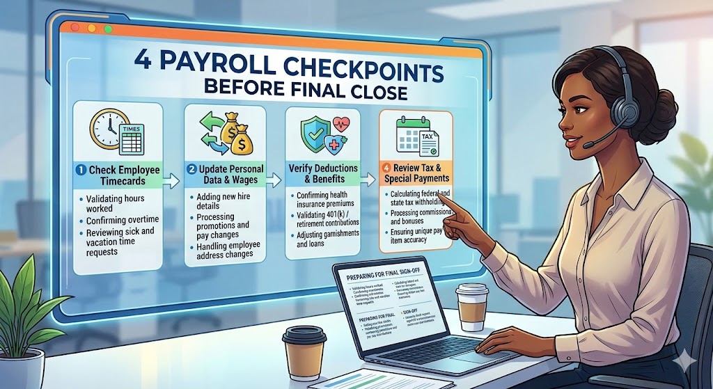 Creating clear payroll checkpoints before final close ensures that errors are identified early, responsibilities are defined, and payroll becomes a controlled process rather than a reactive one.