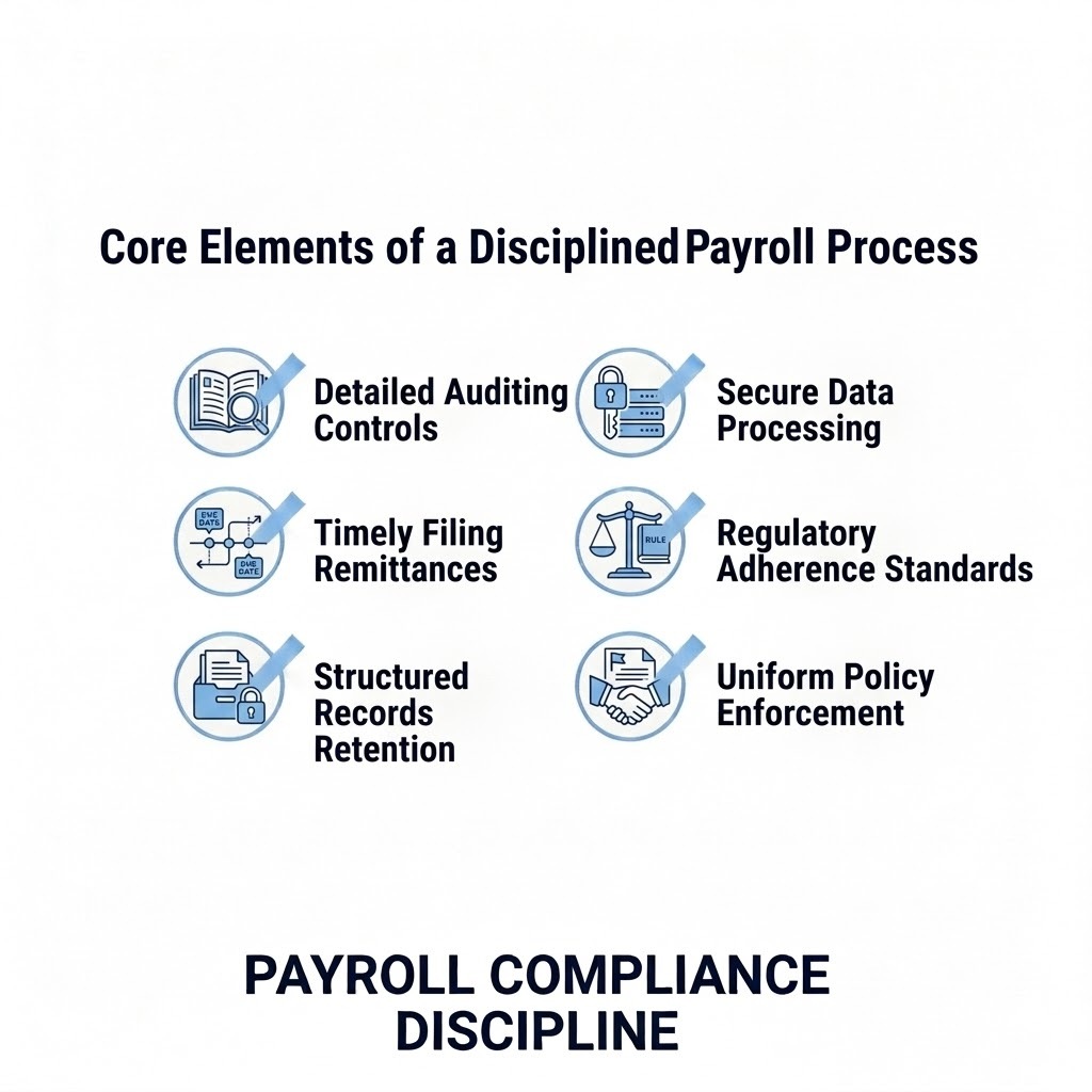 Payroll compliance discipline ensures that reporting obligations are met consistently rather than reactively.